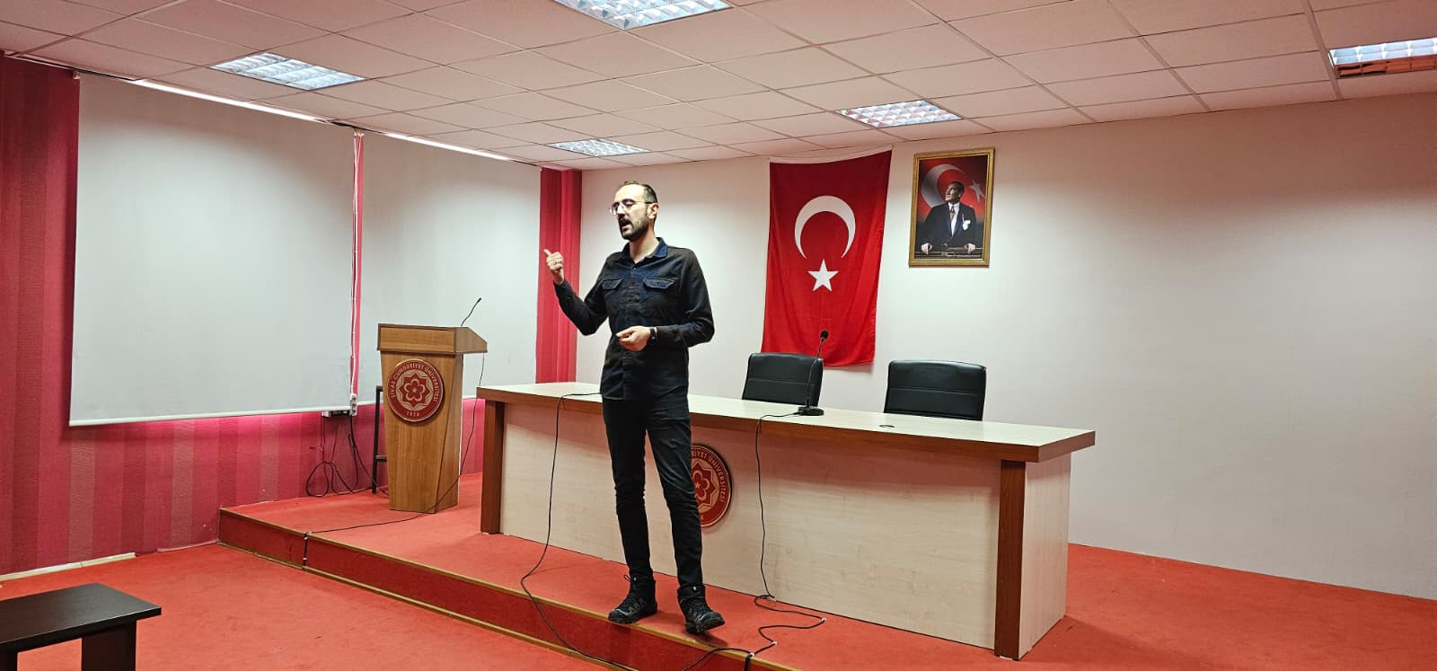 Bölüm Başkanı Dr. Öğr. Üyesi Esin Tuğba ŞİMŞEK ÇELİK’in düzenlemiş olduğu Mezun Öğrenci Söyleşisi’ne, bölümün ilk mezun öğrencilerinden Demirdağ Gar Şefliği Hareket Memuru Mevlüd Sarıoğlu konuşmacı olarak katıldı. İş hayatına geçiş sürecini ve mesleki tecrübelerini öğrencilerimizle paylaşan Sarıoğlu, iş hayatına dair öğrencilere tavsiyelerde bulundu. Etkinlik, öğrencilerle mezunlar arasında etkileşimi güçlendirmeyi ve mezun deneyimlerinden ilham alınmasını sağlamayı amaçladı. Söyleşi boyunca öğrencilerin sorularını içtenlikle cevaplayan konuşmacı Sarıoğlu’na söyleşi sonunda teşekkür belgesi takdim edildi.