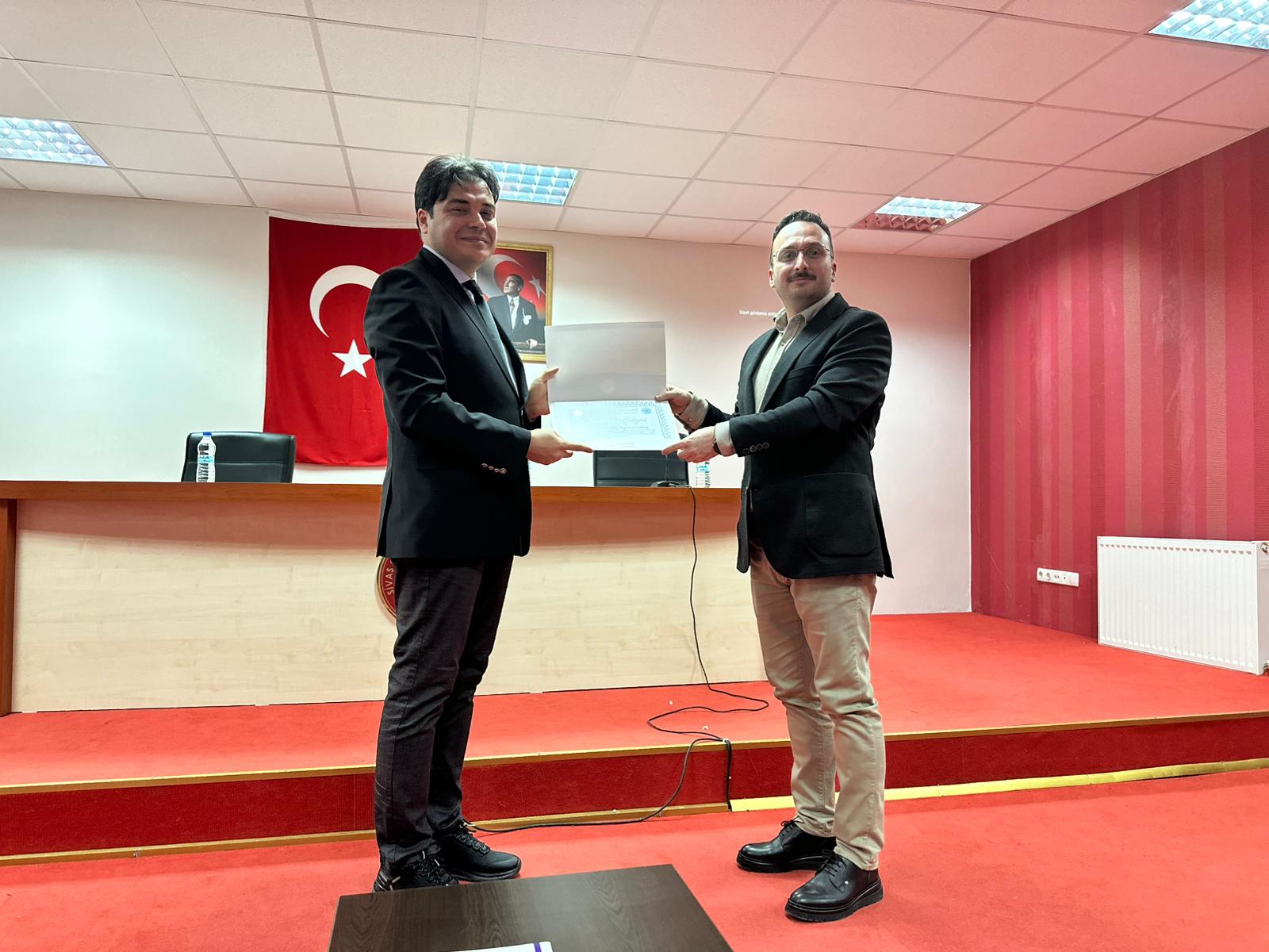 Etkinlik sonunda, Yüksekokul Müdürü Doç. Dr. Bünyamin Demirgil tarafından konuşmacı Prof. Dr. Miraç Burak Gönültaş ile moderatör Dr. Öğr. Üyesi Özlem Naldöken’e katkılarından dolayı teşekkür belgesi takdim edildi.