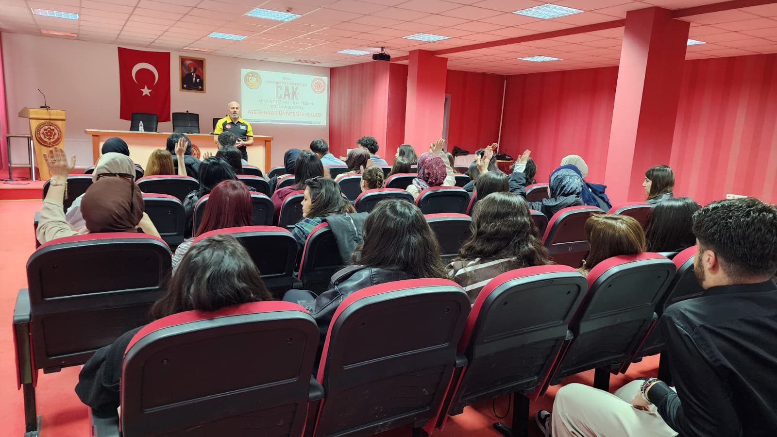 Afet farkındalığını artırmak ve öğrencileri afetlere karşı bilinçlendirmek amacıyla düzenlenen eğitimde, temel afet bilinci, bireysel hazırlık süreçleri ve acil durumlarda yapılması gerekenler hakkında önemli bilgiler paylaşıldı.